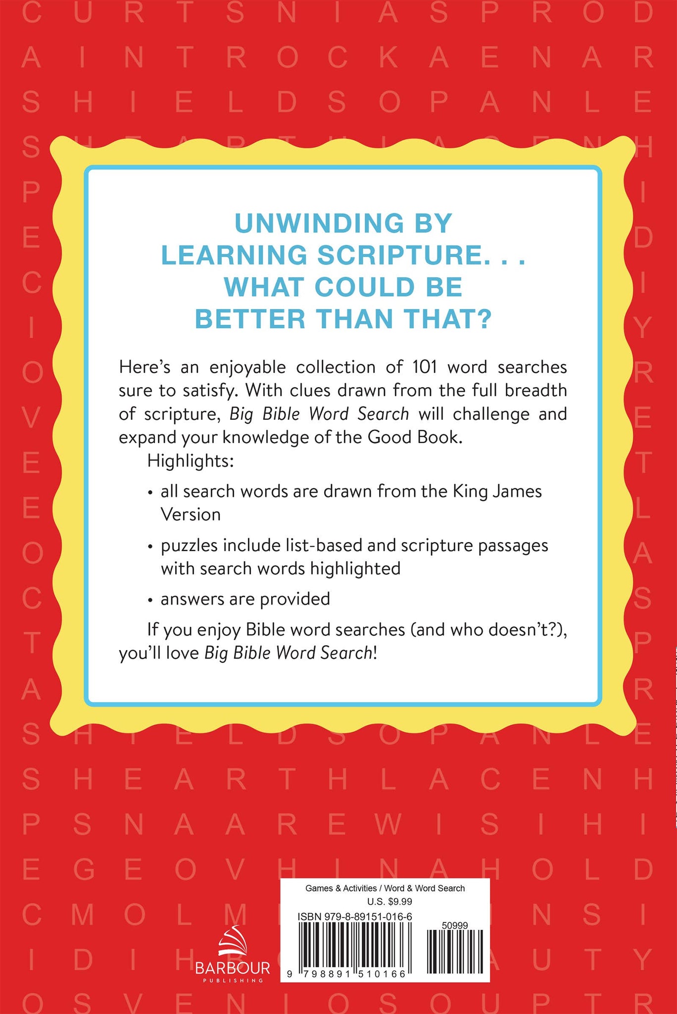 Highlights: all search words are drawn from the King James Version puzzles include list-based and scripture passages with search words highlighted answers are provided If you enjoy Bible word searches (and who doesn’t?), you’ll love Big Bible Word Searches!