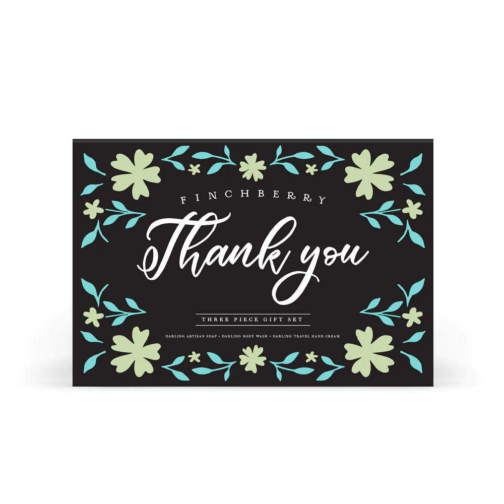 Each Thank You Gift Set includes: a Darling Bar Soap, Darling Body Wash, and a Darling Travel Hand Cream