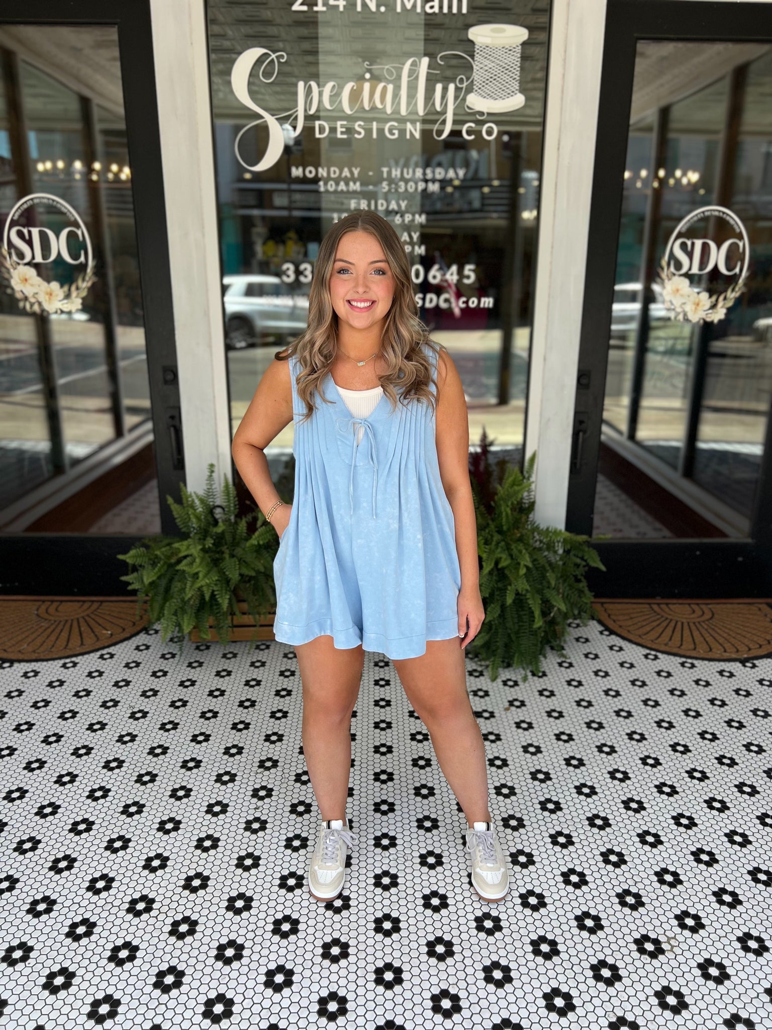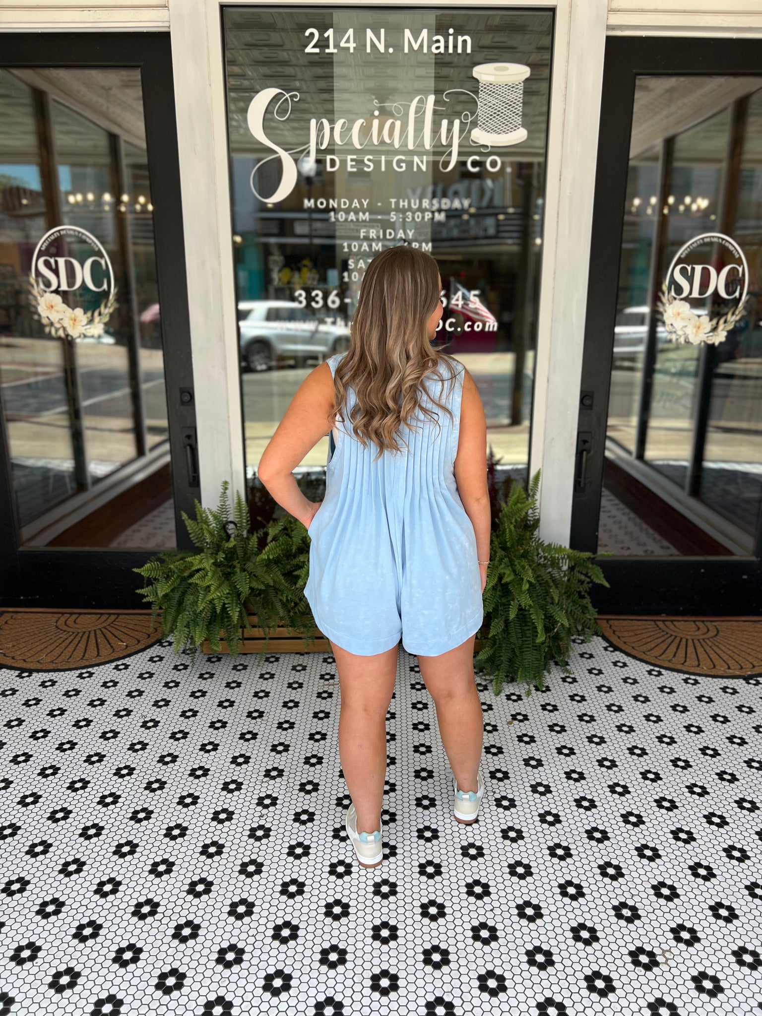 Get ready to slay this spring and summer with the Kendall Pleated Romper in Blue! This oversized, sleeveless romper features trendy pleated detailing and comfy shorts, making it perfect for all your warm weather adventures.