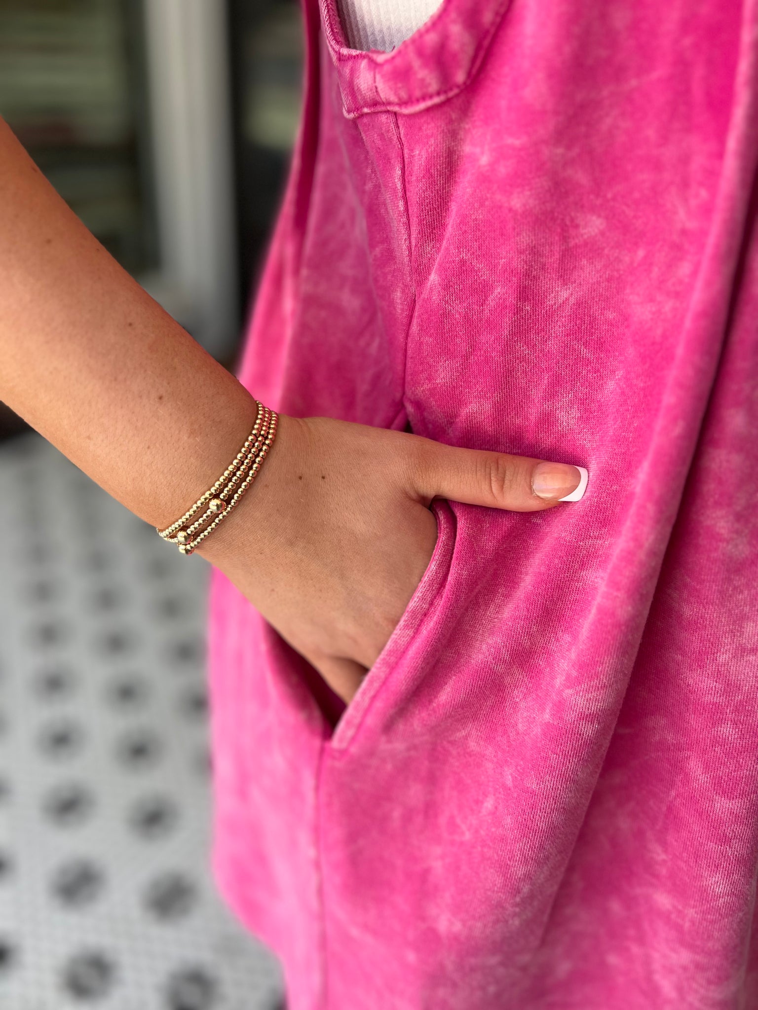 Get ready to slay this spring and summer with the Jenny Pleated Romper in Pink! This oversized, sleeveless romper features trendy pleated detailing and comfy shorts, making it perfect for all your warm weather adventures.