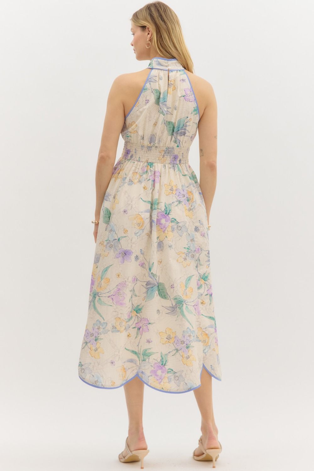 Get ready to stun in the Kaia Halter Midi Dress. The halter neckline and bold trim add a touch of elegance to the soft floral pattern. Perfect for any occasion, this midi dress will have you looking and feeling your best.