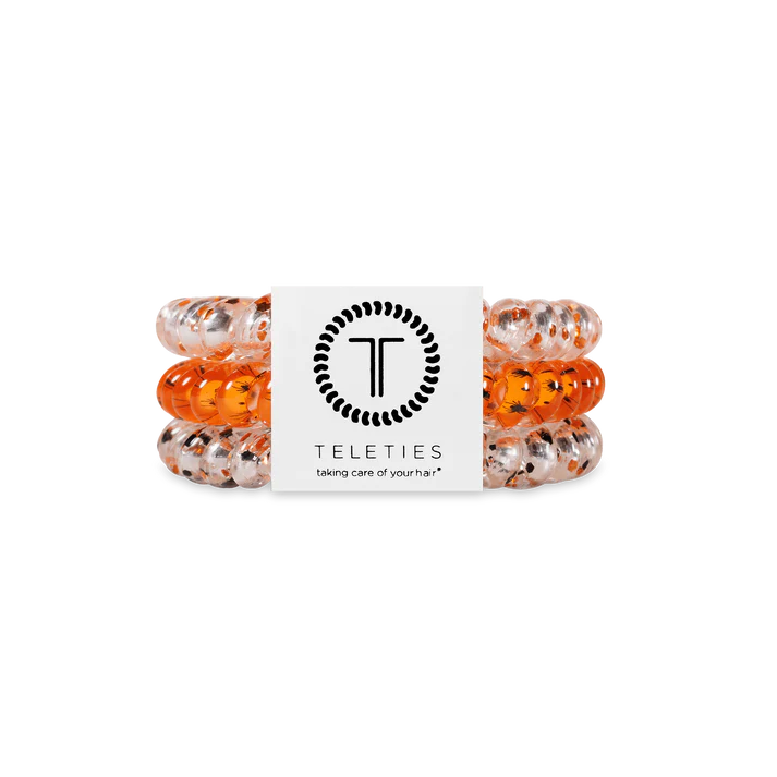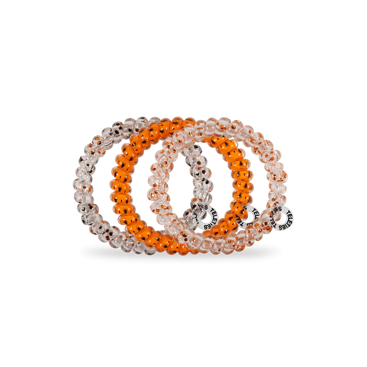 Spooky Sparkles Small Hair Ties in Black and Orange offer a strong grip without damage, doubling as a chic wrist accessory when not in use. Your new favorite hair essentials all year round.