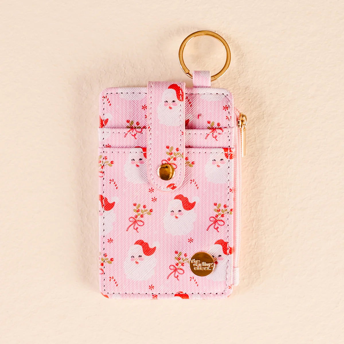 Ditch the bulky wallet for our new Holly Jolly Keychain Wallet made of high-quality vegan leather. Its lightweight design is accented with adorable prints and patterns, perfect for any style. With a gold keyring and zipper, it can be worn as a wristlet for added convenience!