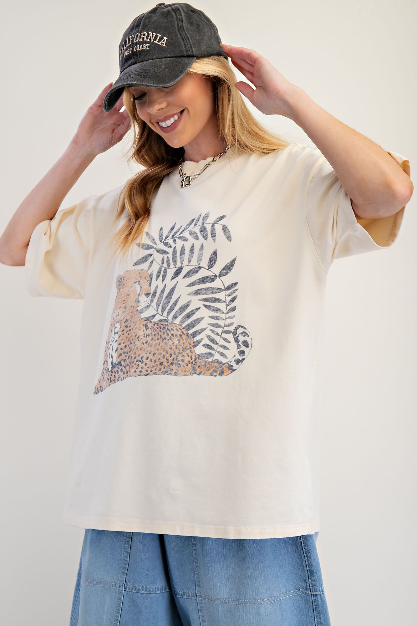 Spice up your spring wardrobe with this Cheetah Graphic Tee! The relaxed fit and faded cheetah print design make it perfect for everyday wear.