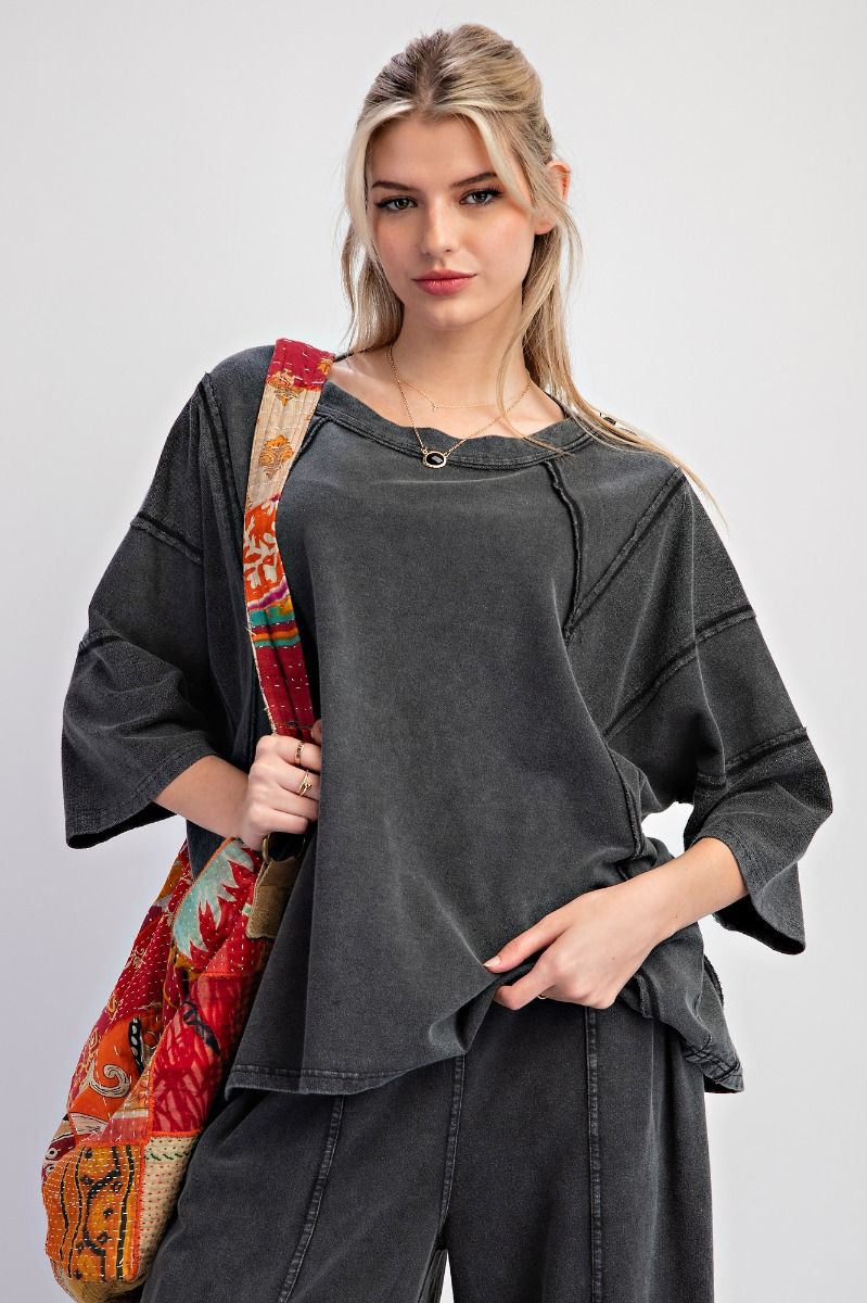 Say goodbye to boring clothes and hello to comfort with our new set by Easel. With an oversized fit and flowy short sleeves, this top is perfect for wearing on the go!