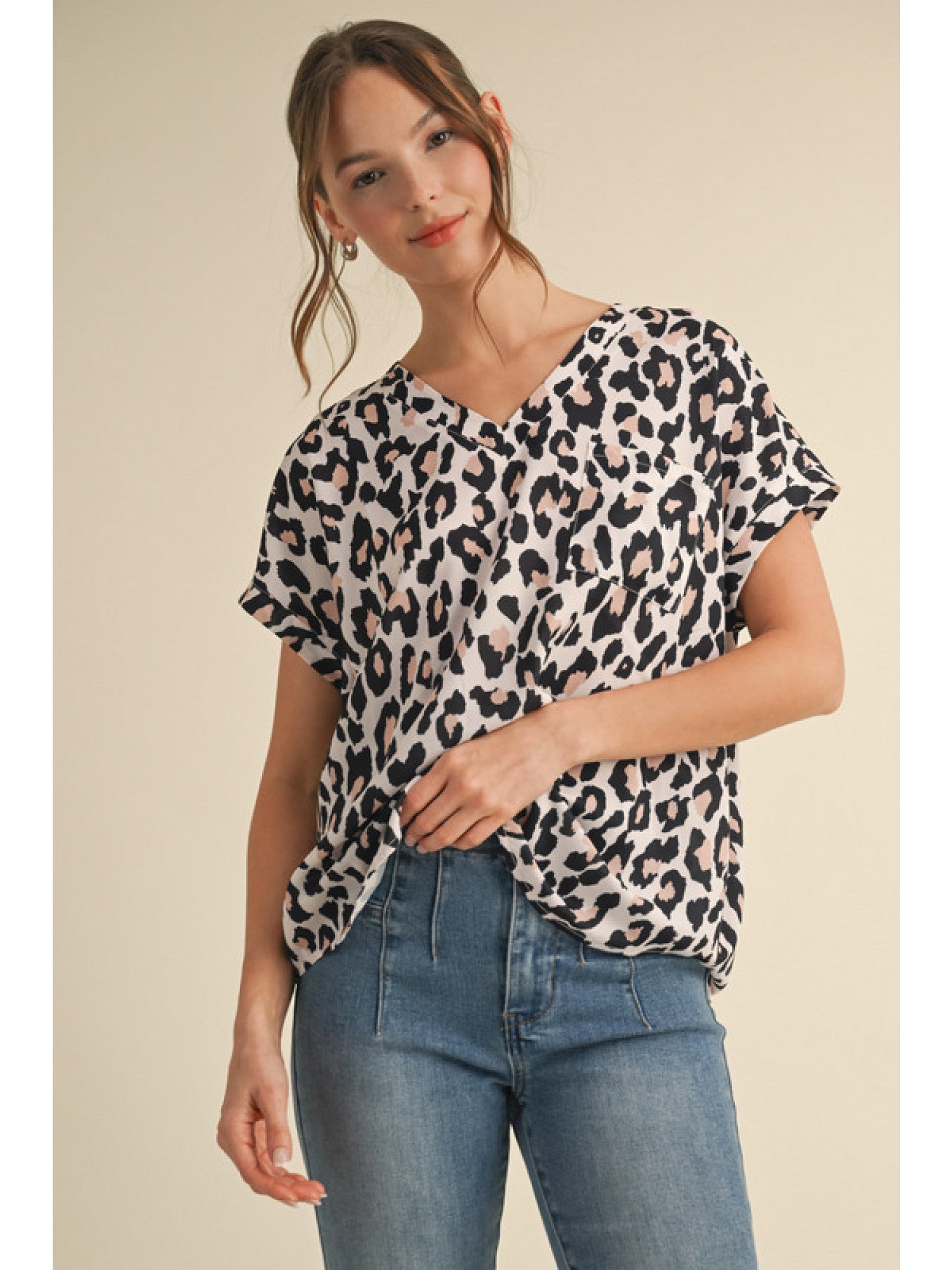 The Cool Cat V-Neck Top features a playful bold leopard print with short sleeves, making it an easy choice for transitioning into fall. Its flattering v-neck and lightweight feel bring a fresh edge to your wardrobe!