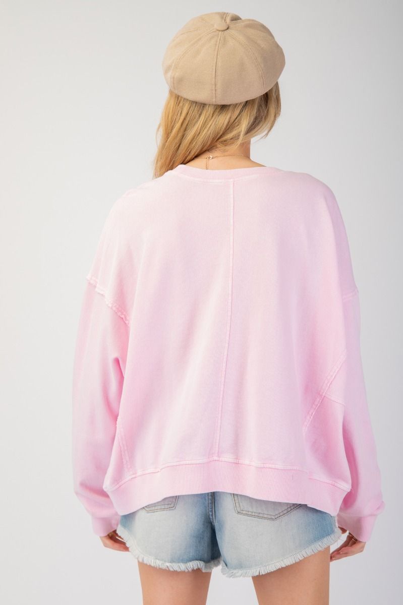 -FLOWER PATCH WASHED TERRY KNIT PULLOVER
