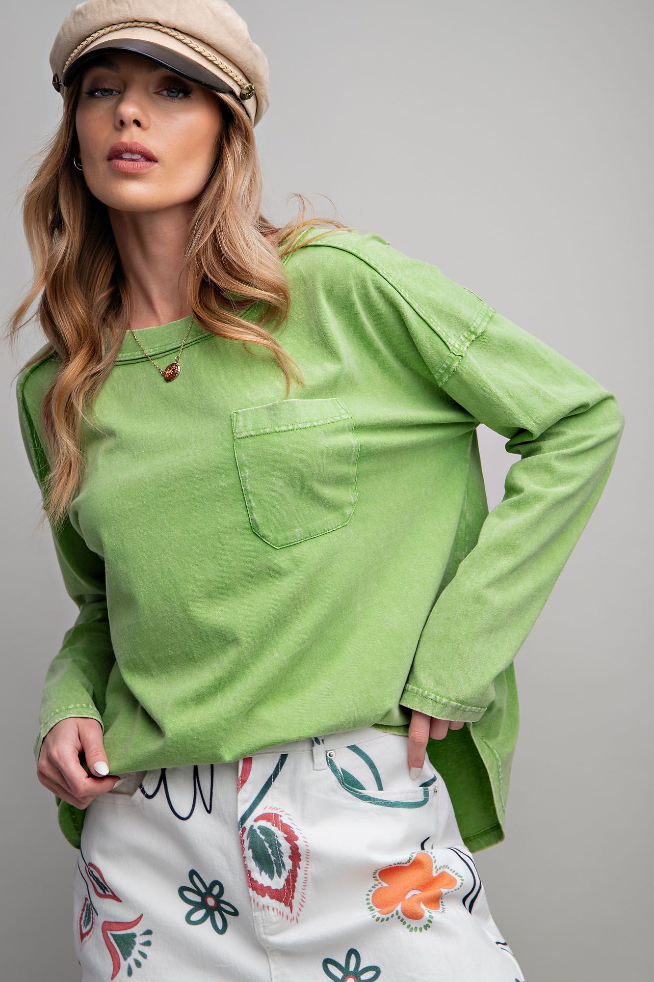 -MINERAL WASHED-ROUNDED NECKLINE-DROPPED SHOULDERS-FRONT CHEST POCKET-LOOSE AND RELAXED FIT