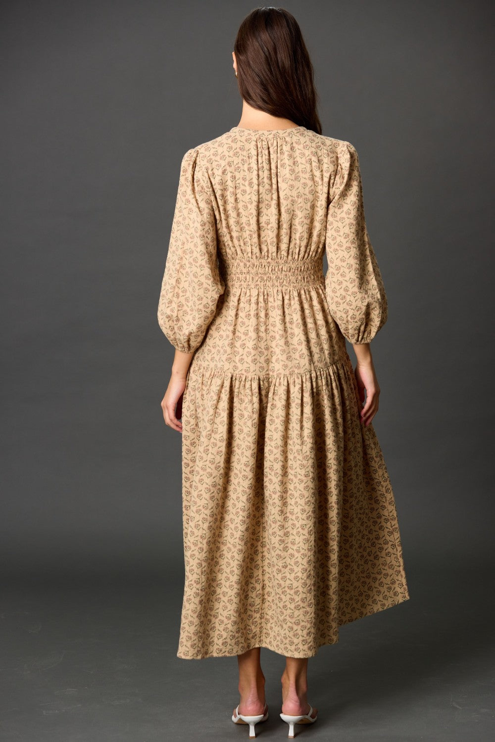 Featuring a patchwork-inspired floral print, this dress is designed with three voluminous tiers that create beautiful movement and shape. The midi length adds versatility, while the soft cotton blend offers all-day comfort.