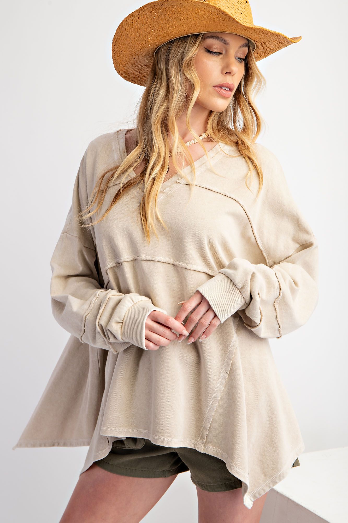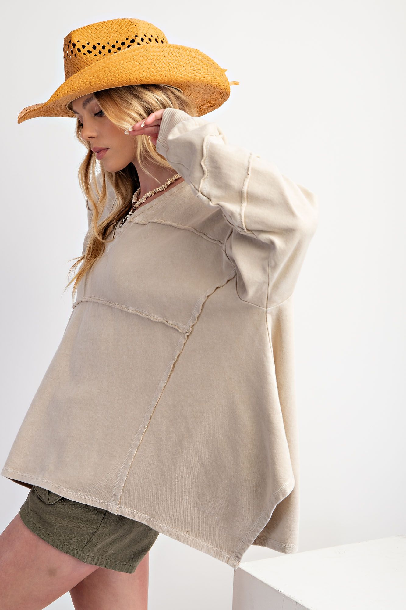 Get ready to embrace cozy vibes with our Gabby Oversized Sweater Top! Featuring an oversized fit and flowy design, this long-sleeve top is the perfect combination of style and comfort. With a v-neckline, you'll feel effortlessly chic while staying warm and comfy. Upgrade your wardrobe with this must-have piece!