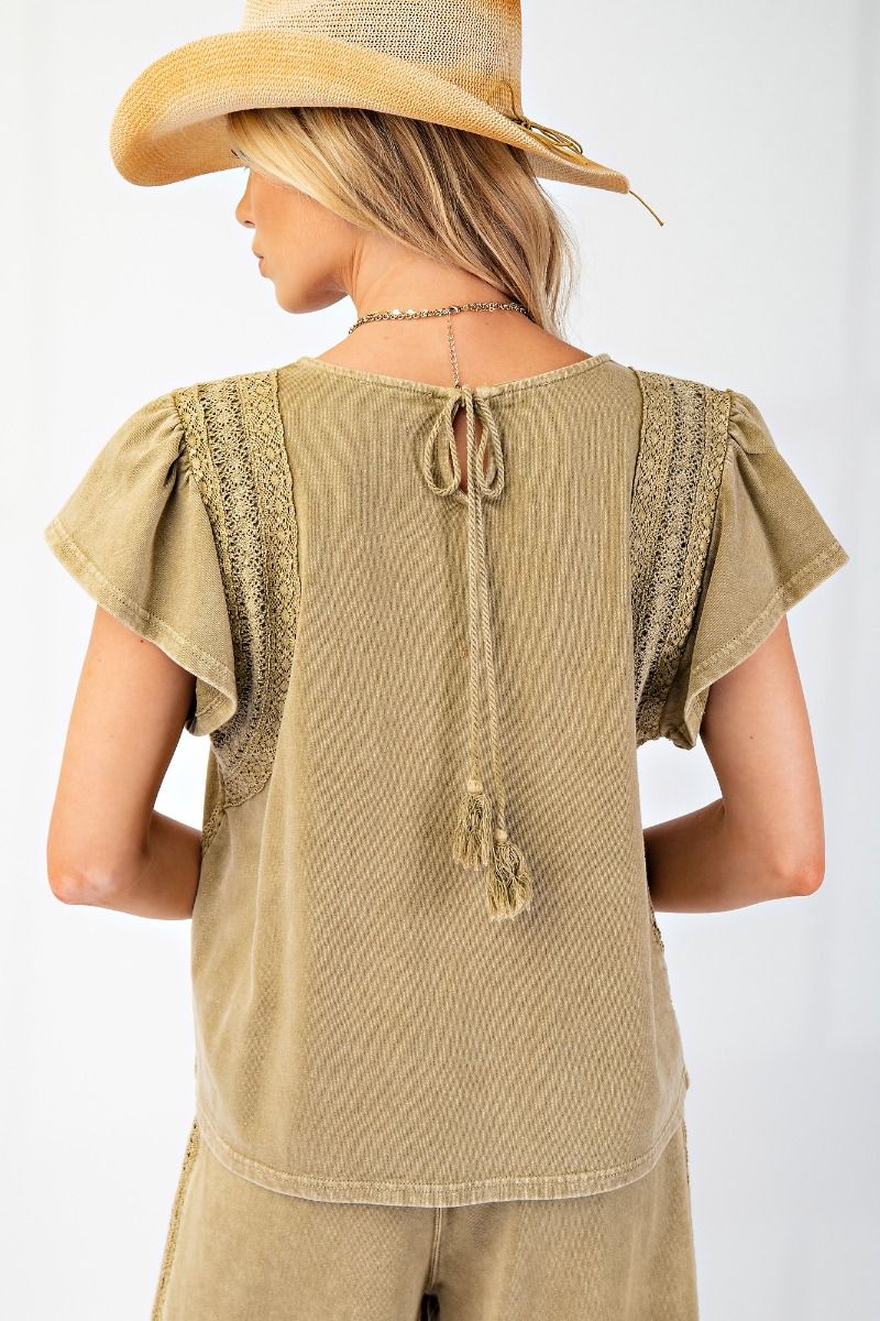 Get ready to keep it real with our new top by Easel. With ruffle sleeves, crochet trim details, and a tie-neck, this cozy piece brings a touch of playfulness to any outfit. Stay stylish and comfortable all day long!