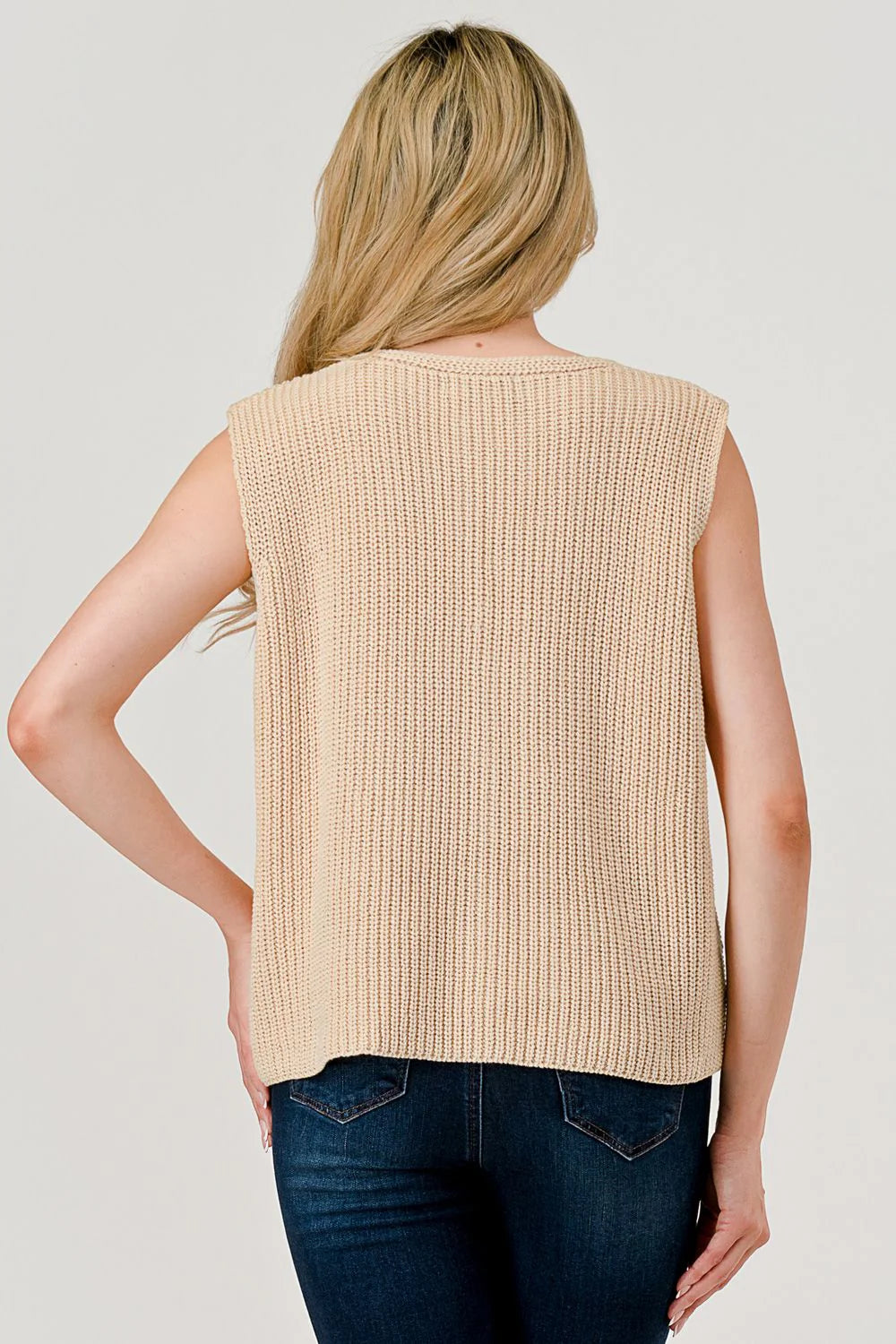 The London Sweater Vest in Cream combines cozy knit comfort with a sleek, playful design. Ideal for layering or wearing on its own, it adds a soft touch to any outfit with effortless style.