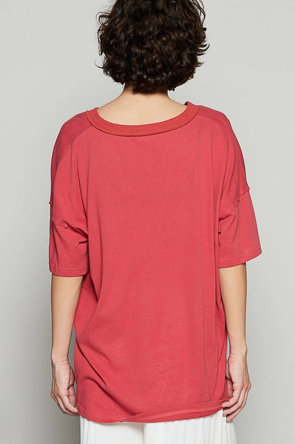 Effortlessly cool and comfortably oversized, this tomato red tee brings a pop of fun to your everyday wardrobe. Features a flattering v-neck and lived-in washed finish that feels like you've loved it forever. Your new go-to piece that plays well with everything else you own.