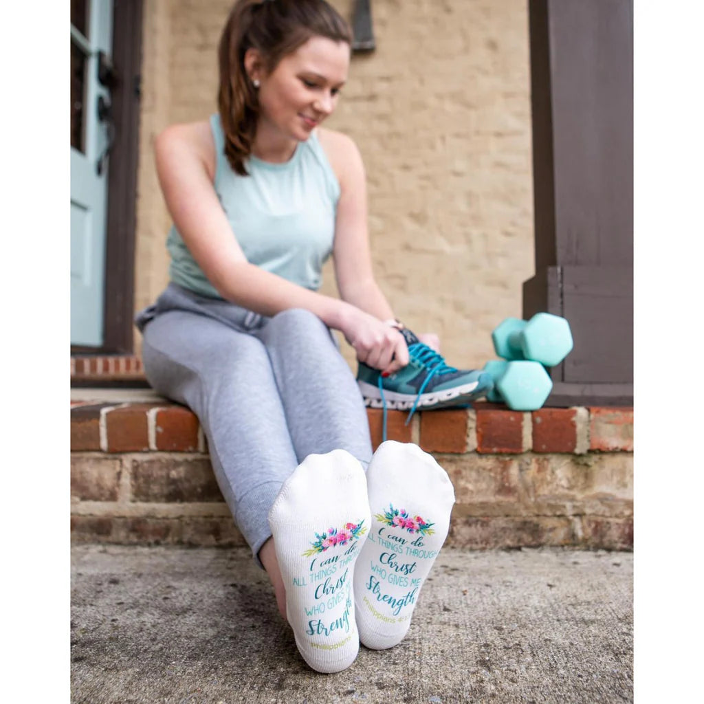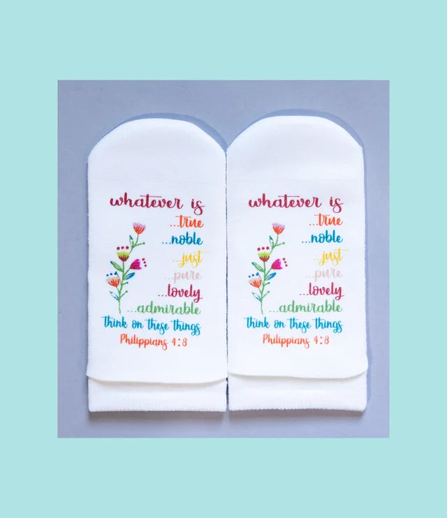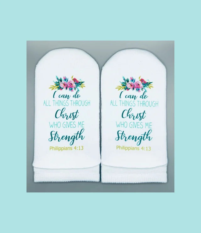 Elevate your sock game with these fun & quirky no show socks! Made in America, they feature a unique design and bible verse. Keep your feet comfortable and stylish while reminding yourself to trust in the Lord. Fits most women's shoe size 6-10.
