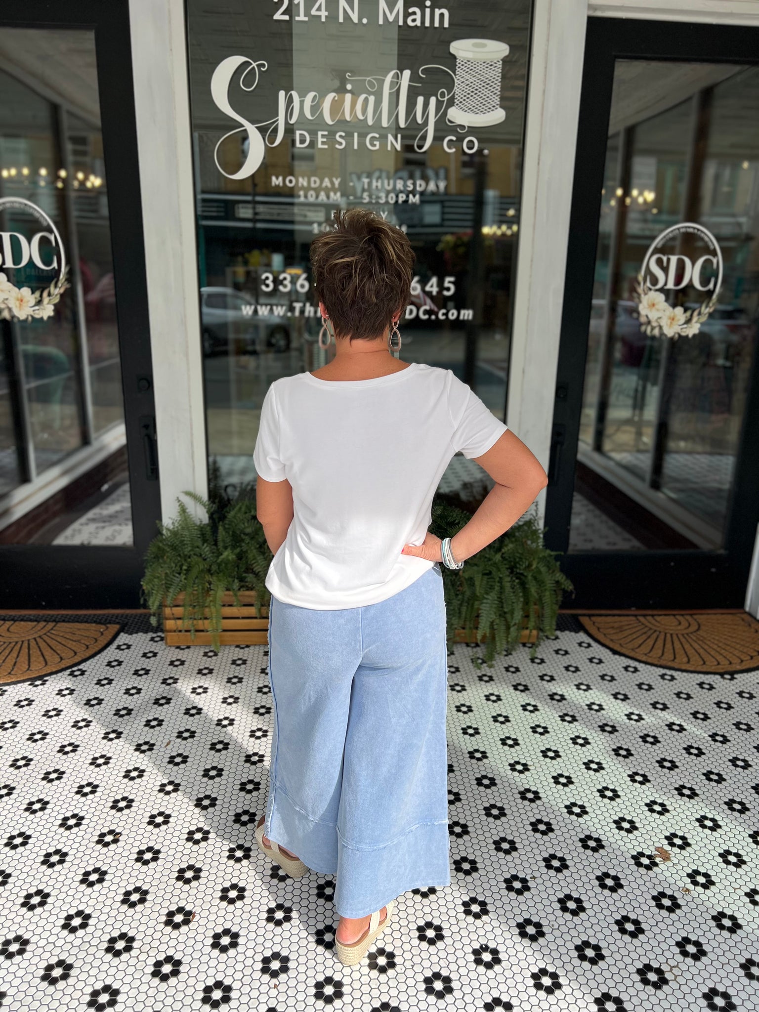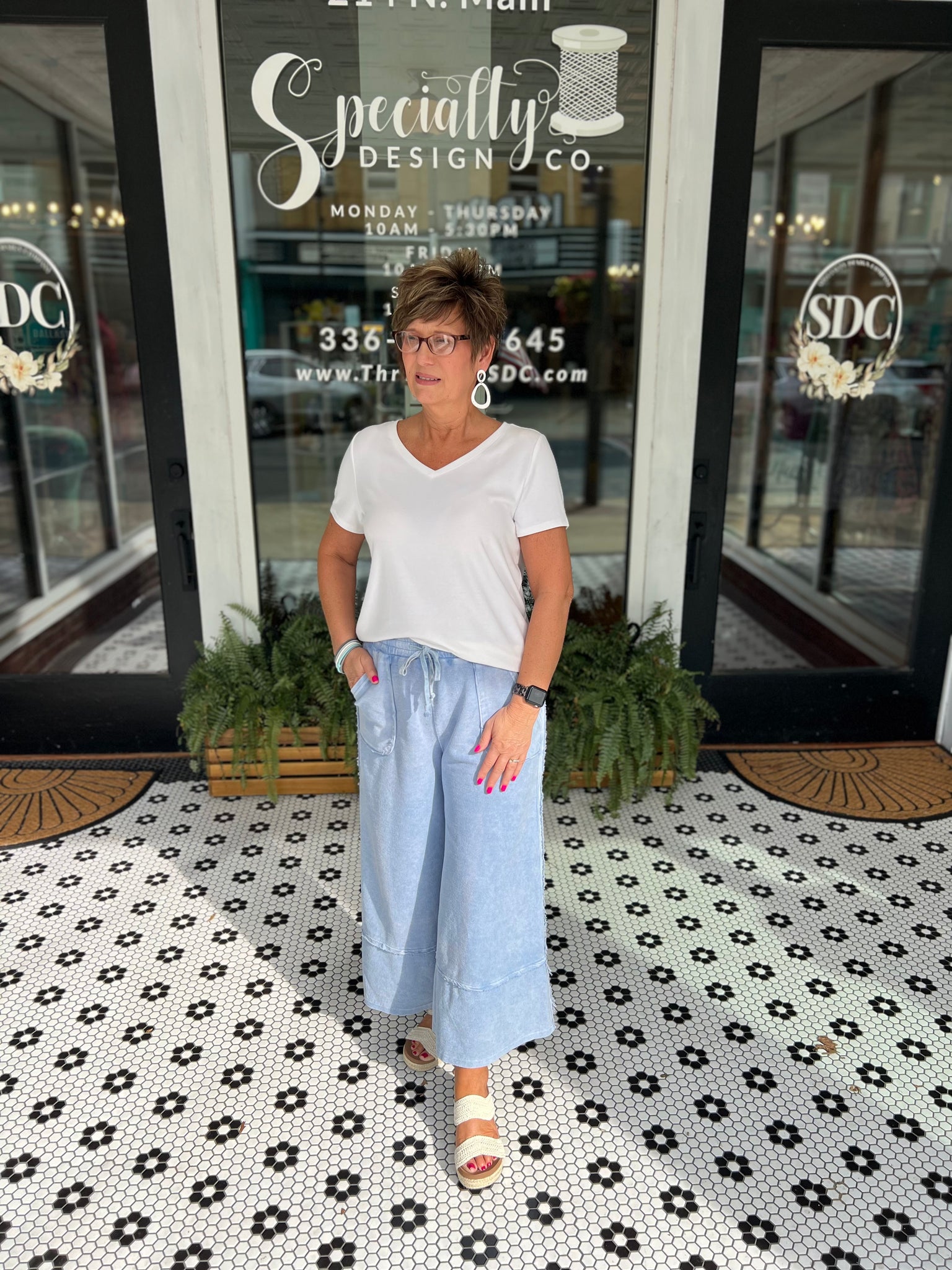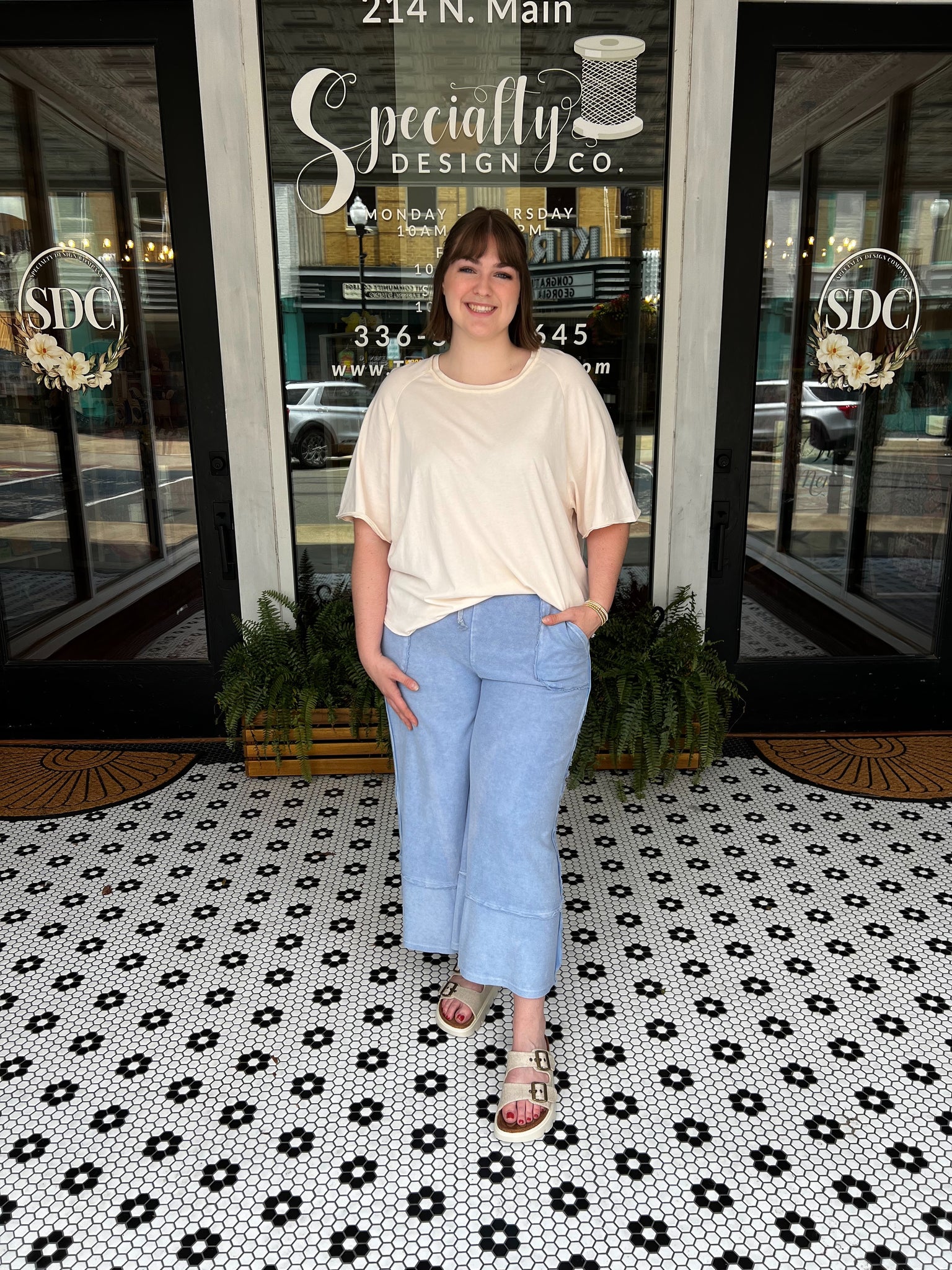Featuring a comfy drawstring waistband and playful raw cut hem, these pants will give you a groovy, relaxed vibe. Plus - the frayed seam detailing adds a fun touch!