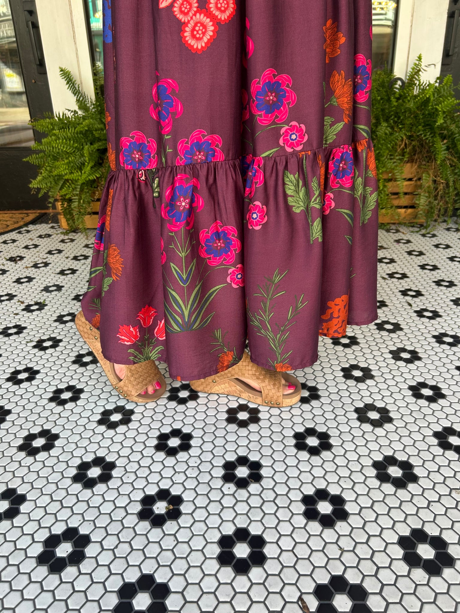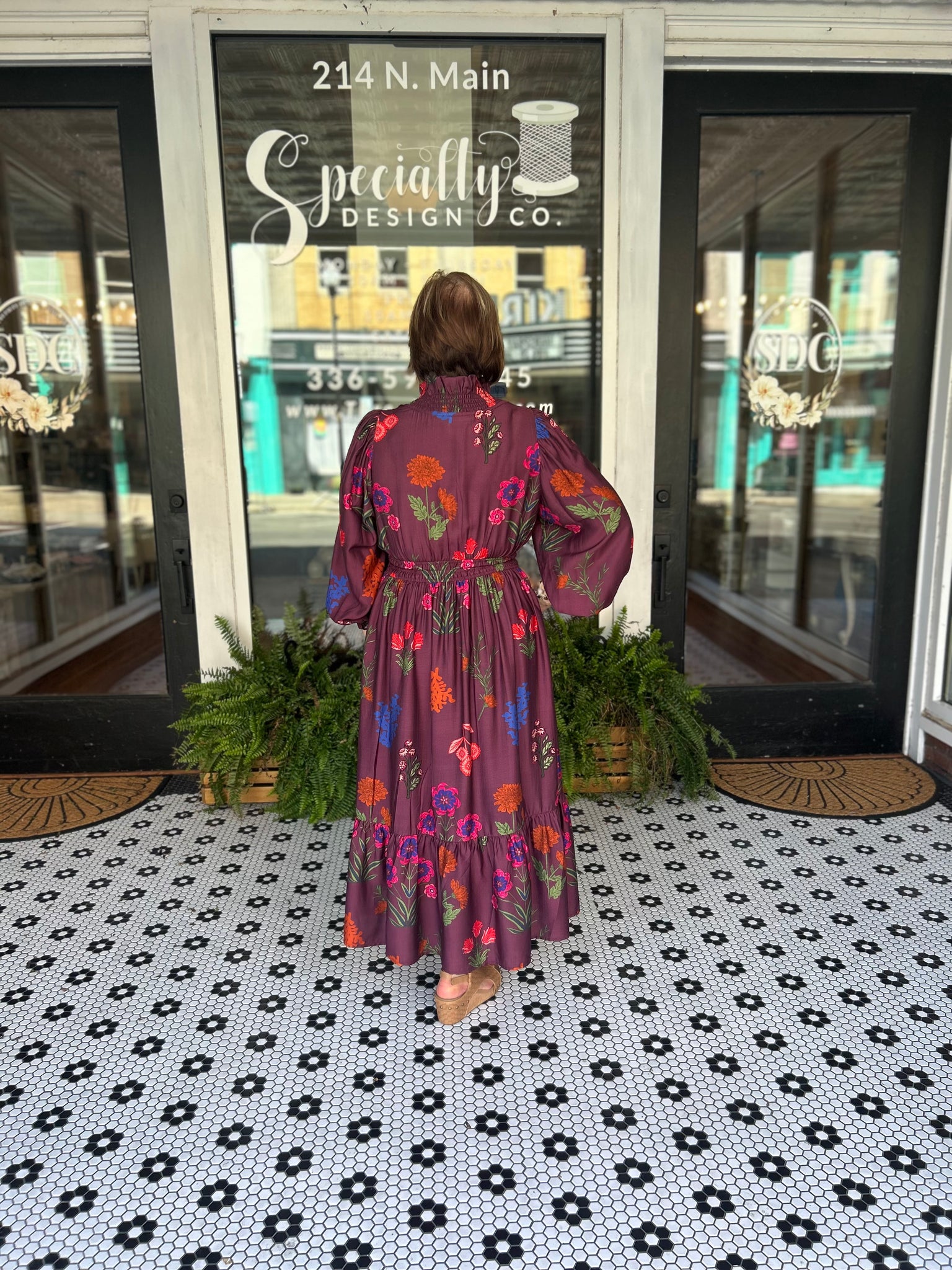 The Florence Dress combines a lively floral print with a fun crossover ruffle neckline. Its long sleeves and midi length make it perfect for easy, stylish wear from day to night.