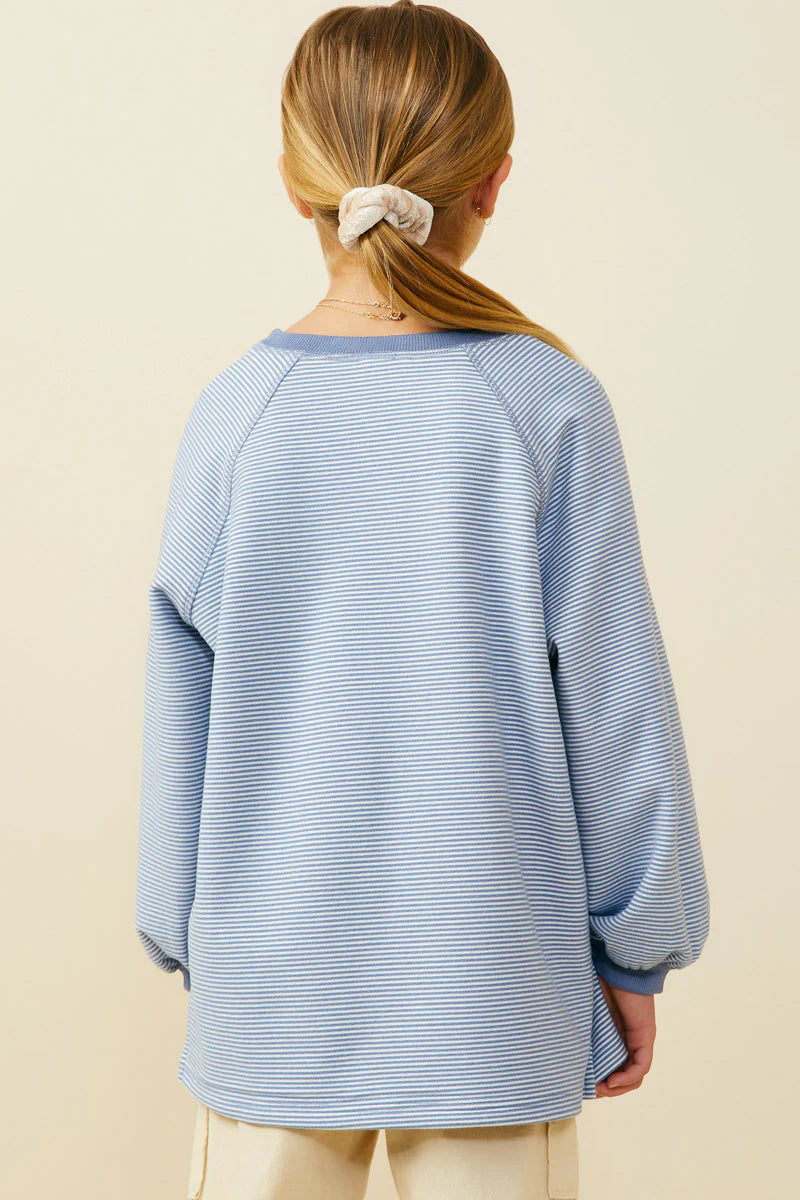 This Minnie Striped Girl’s Tee in blue features playful puff sleeves and an oversized fit, combining comfort with charming style. The blue stripes add a fresh, casual vibe perfect for everyday fun.