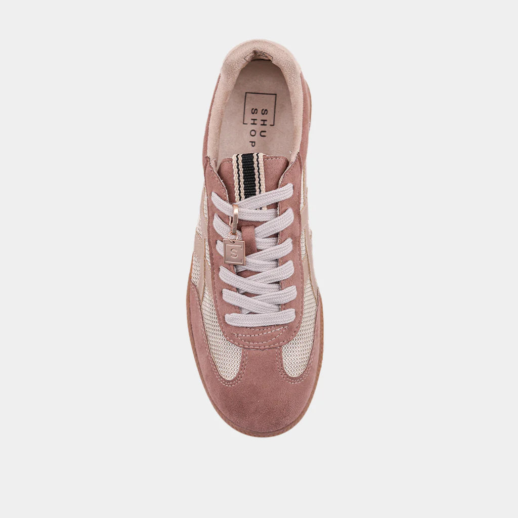 SASHA the sneaker that nails effortless cool. Crafted with faux suede panels and breathable mesh, the Taupe Suede colorway brings an easy neutral tone that matches with everything. A retro-inspired gum sole, classic lace-up design, and signature SHUSHOP gold keychain charm add the finishing touches. Comfortable enough for everyday wear, stylish enough to stand out.
