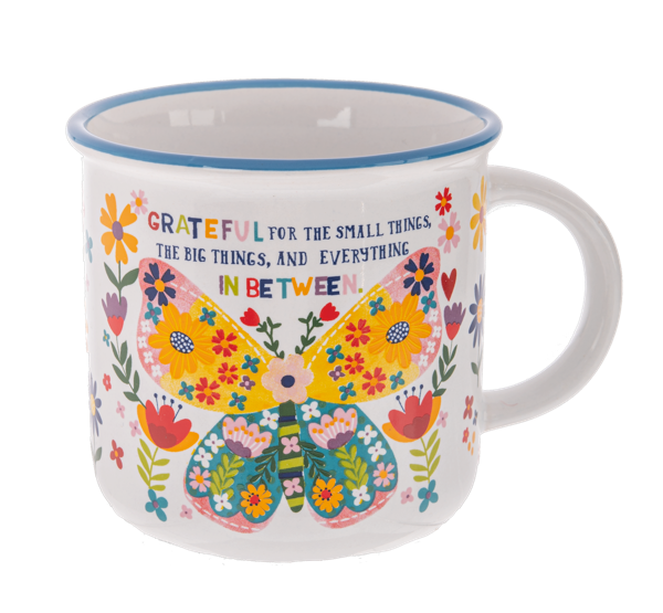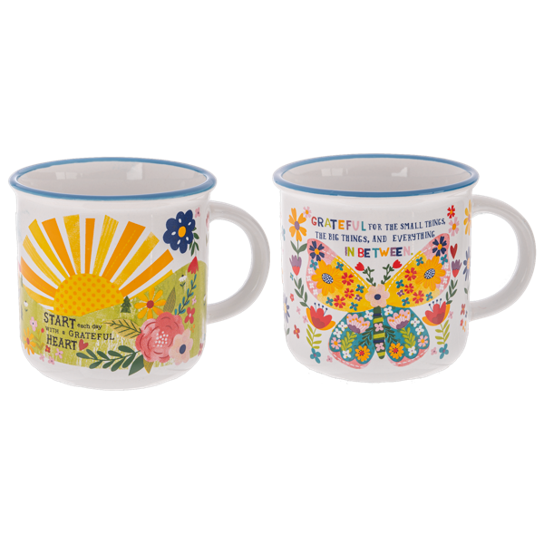 These mugs are the perfect gift for a friend or family member! With two variations, choose between "Start each day with a Grateful Heart" and "Grateful for the small things, the big things, and everything in between", both decorated all around with colorful desgns.