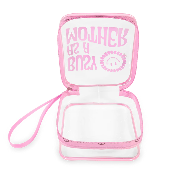 Introducing the TELETIES Busy As A Mother Teletote Travel Pouch in Pink, the perfect clear bag for stadium use and beyond! Designed to meet stadium regulations, this stylish tote combines functionality with a chic look, making it an essential accessory for game days, concerts, and events. Perfect everyday travel tote as well.