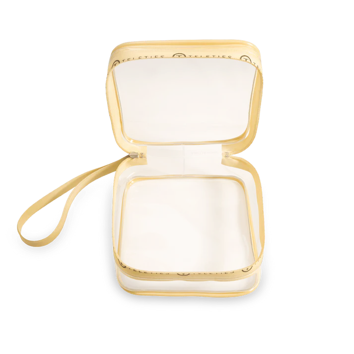 Introducing the TELETIES Tan Teletote Travel Pouch in Tan, the perfect clear bag for stadium use and beyond! Designed to meet stadium regulations, this stylish tote combines functionality with a chic look, making it an essential accessory for game days, concerts, and events. Perfect everyday travel tote as well.