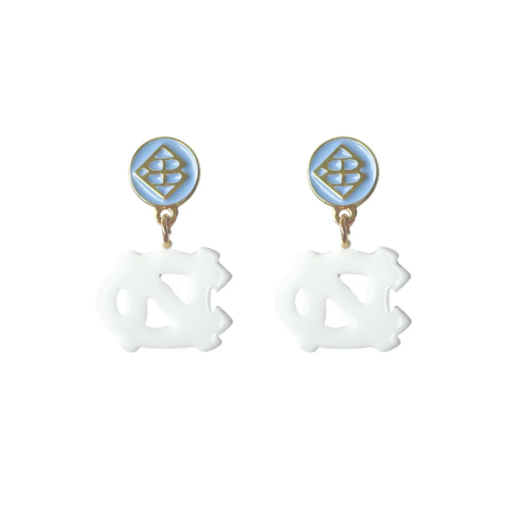 - Mini White UNC Logo Earrings with Carolina Blue BC Logo Top