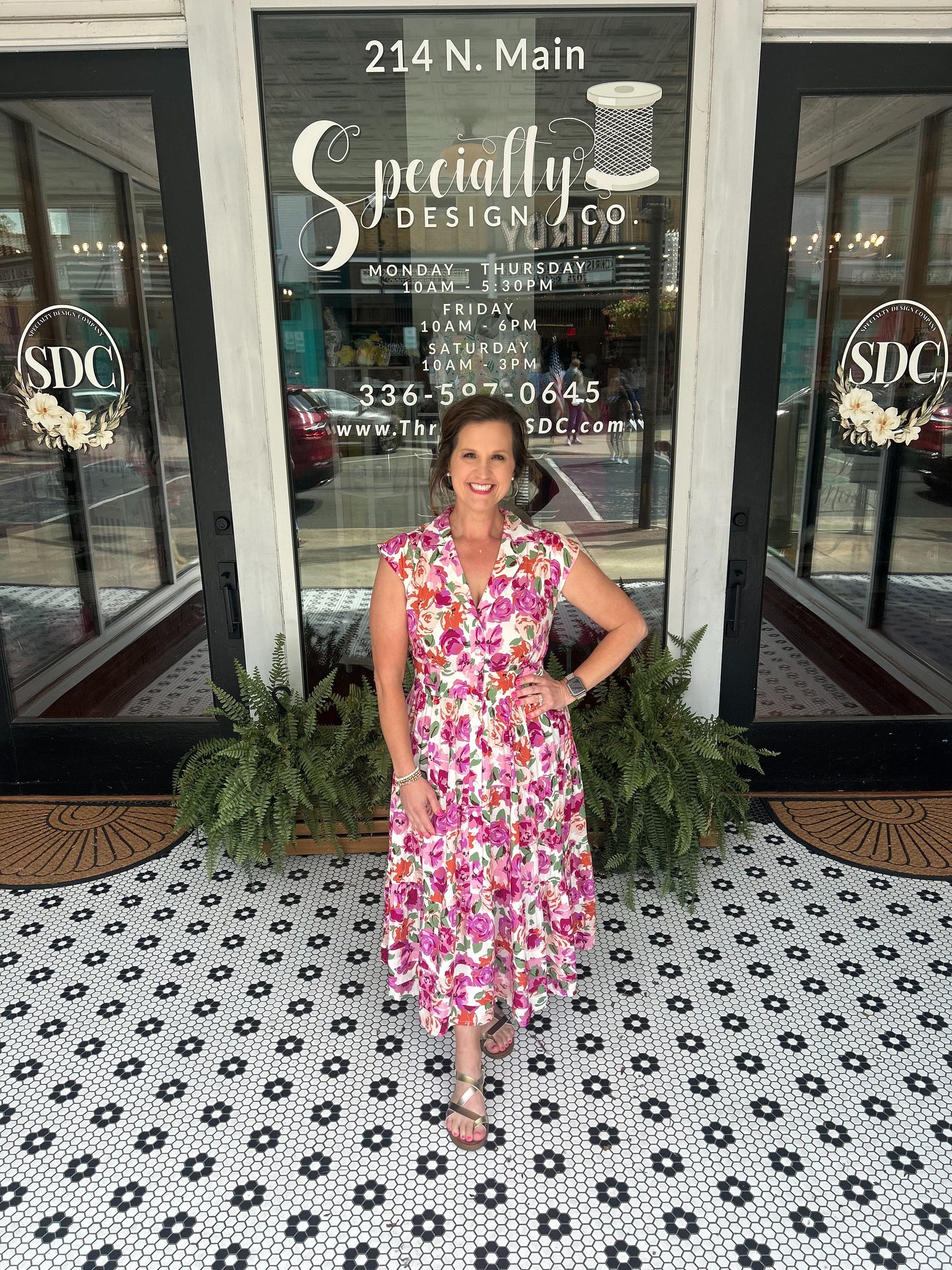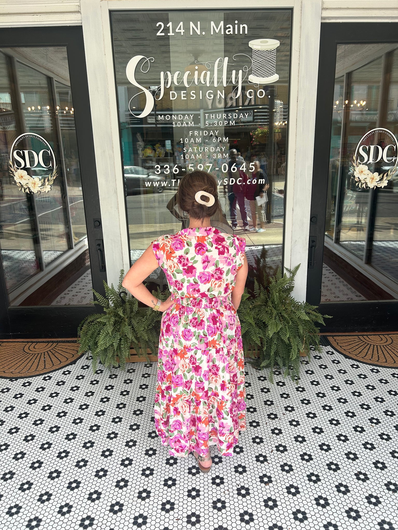 Sophisticated style at its best! COLLARED BUTTONDOWN MIDI DRESS Description COLLAREDCAP SLEEVESBUTTON DOWNTIERED skirt 100% RAYON